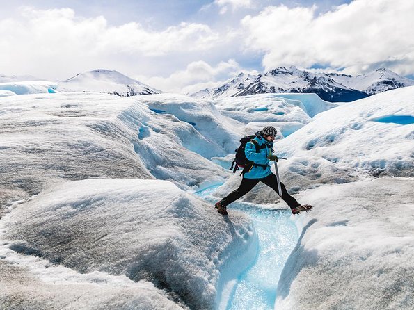 Caminar sobre el glaciar con crampones. Sentir el hielo milenario bajo los pies, ver grietas azules y brindar con whisky enfriado con hielo del glaciar.