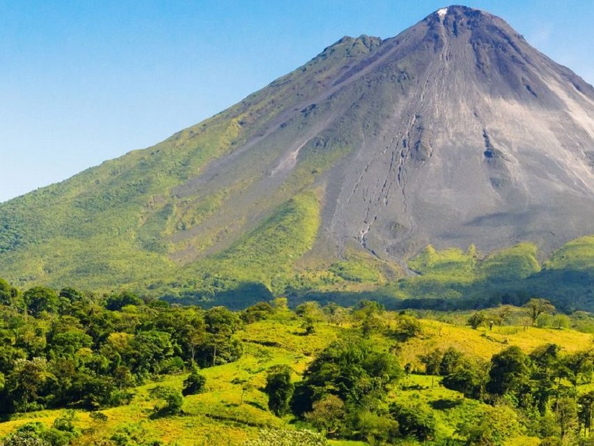 El volcán más icónico de Costa Rica, con aguas termales naturales, puentes colgantes sobre la selva, tirolinas y el lago Arenal. Base perfecta para aventura.