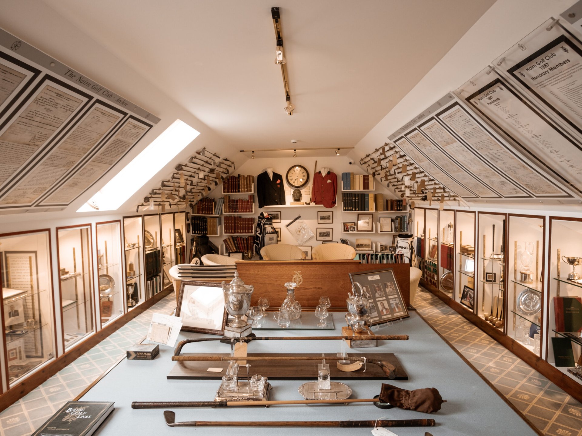 La Sala de Archivos Históricos del Nairn Golf Club muestra la rica historia del club con fotos, trofeos y recuerdos, ofreciendo un vistazo a sus tradiciones y golfistas legendarios.