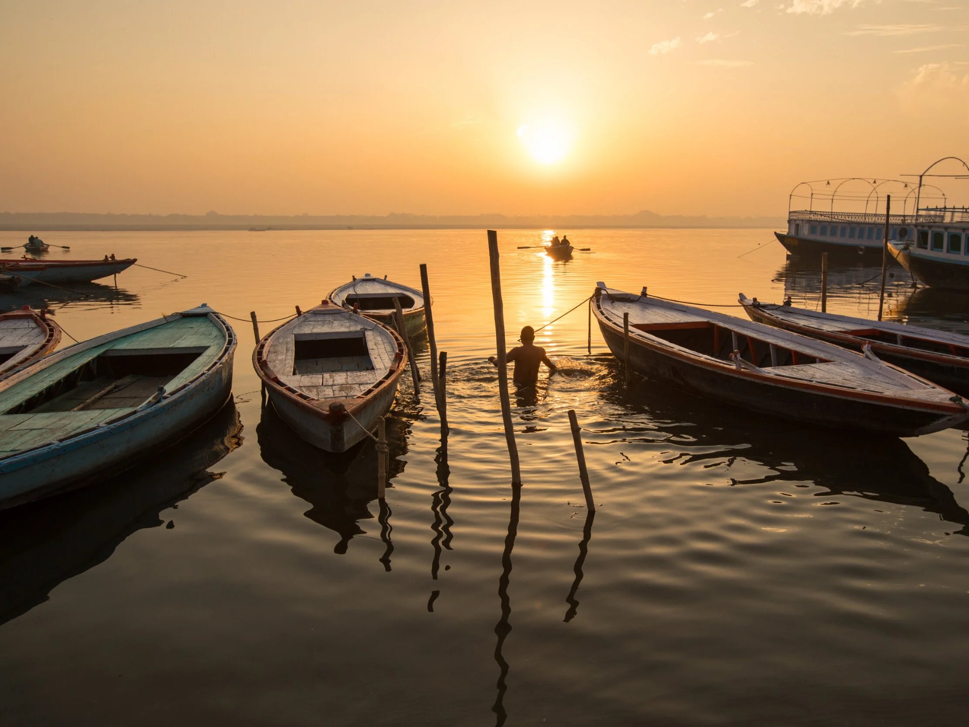 La ciudad más antigua del mundo habitada continuamente. Los ghats del Ganges, las ceremonias del fuego, la vida y la muerte en las orillas del río sagrado.