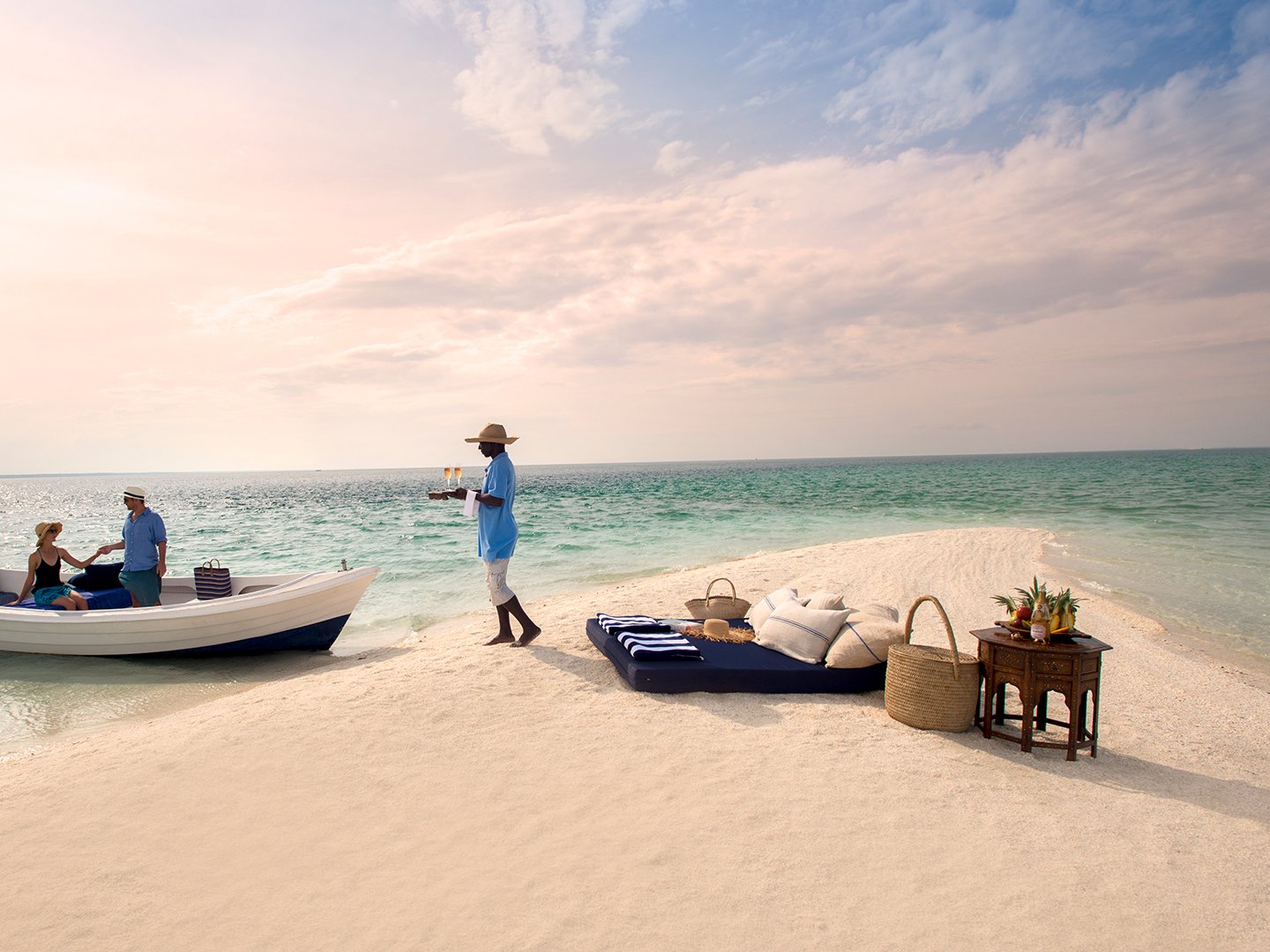 Navegar en un dhow tradicional mientras el sol cae sobre el Índico. Vino, mariscos frescos y la silueta de las islas en el horizonte. Sencillo y perfecto.
