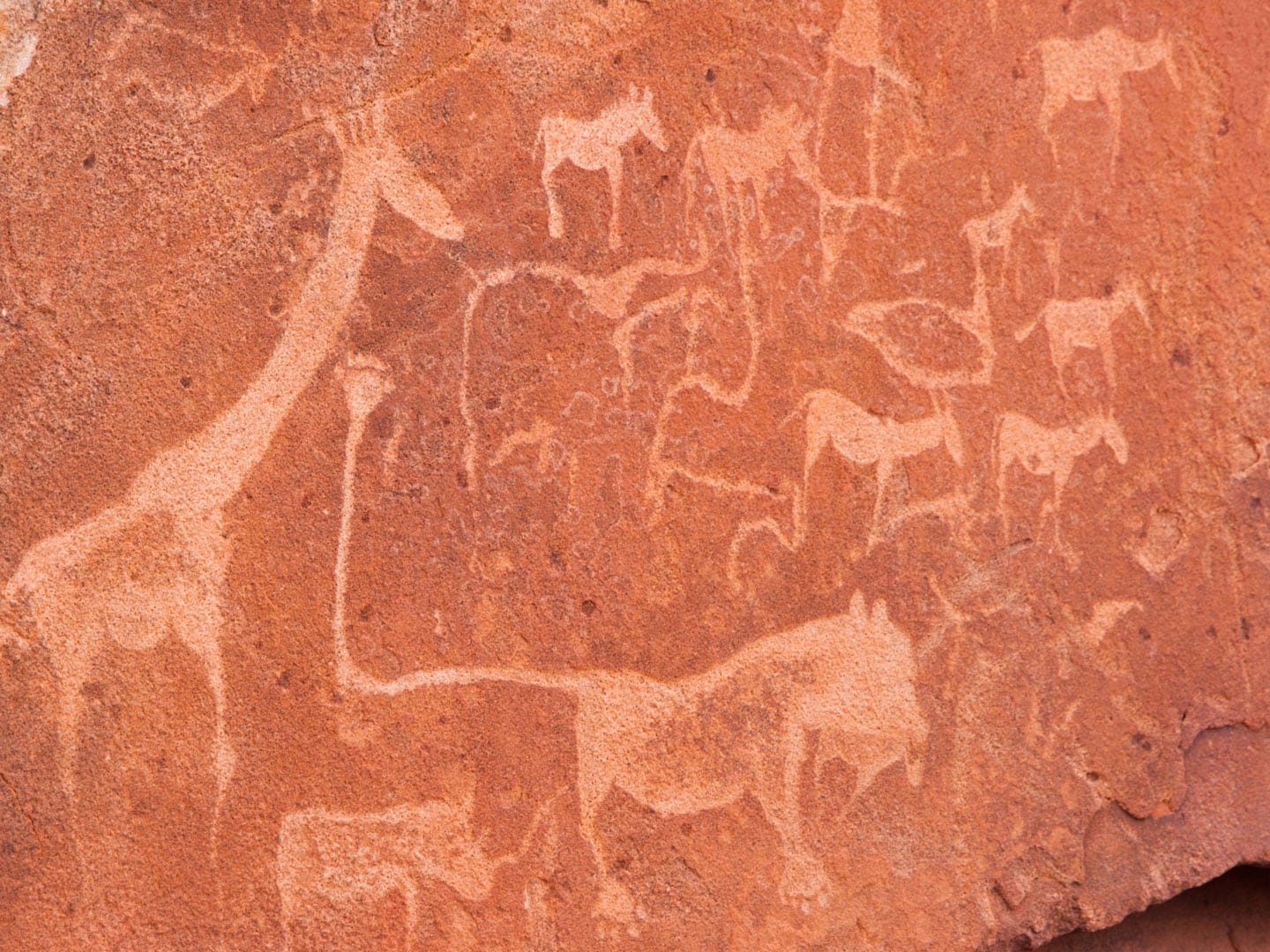 Formaciones rocosas antiguas, grabados rupestres de Twyfelfontein (UNESCO) y los últimos elefantes y rinocerontes adaptados al desierto.
