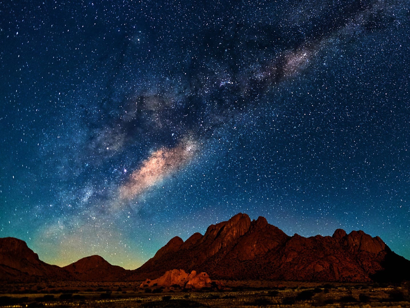 Namibia tiene algunos de los cielos más oscuros del planeta. La Vía Láctea sobre las dunas, sin una sola luz artificial en el horizonte. Astrofotografía o simplemente contemplación.