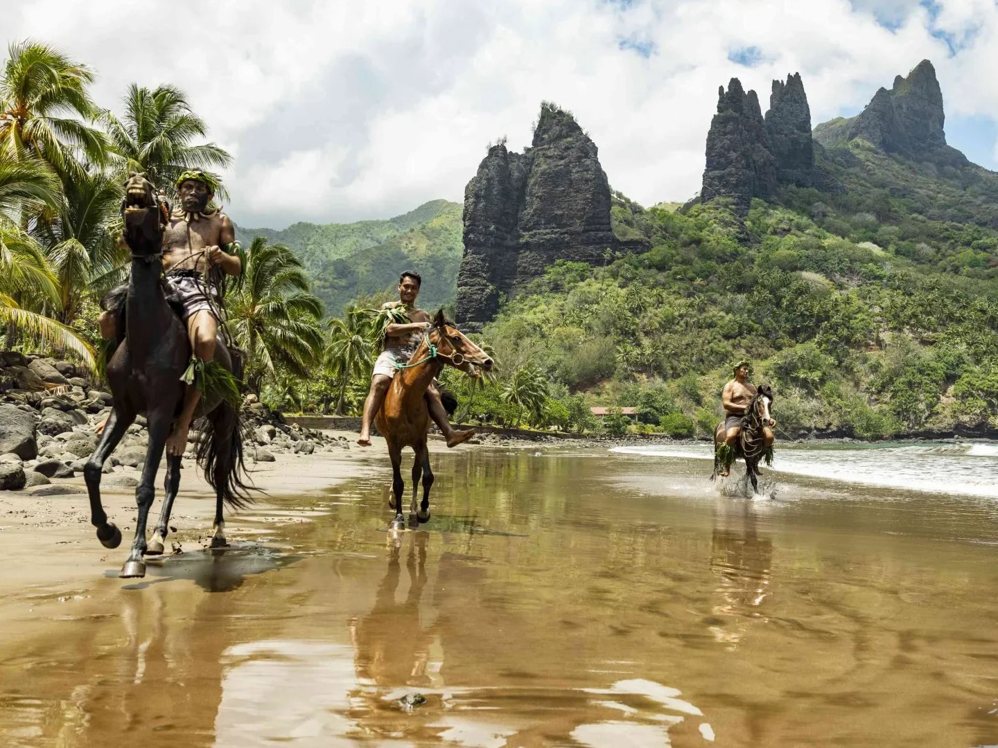 Las islas más remotas y dramáticas. Donde Gauguin pintó y Jacques Brel vivió. Montañas verticales, tikis antiguos, cabalgatas, cultura ancestral. Para aventureros.