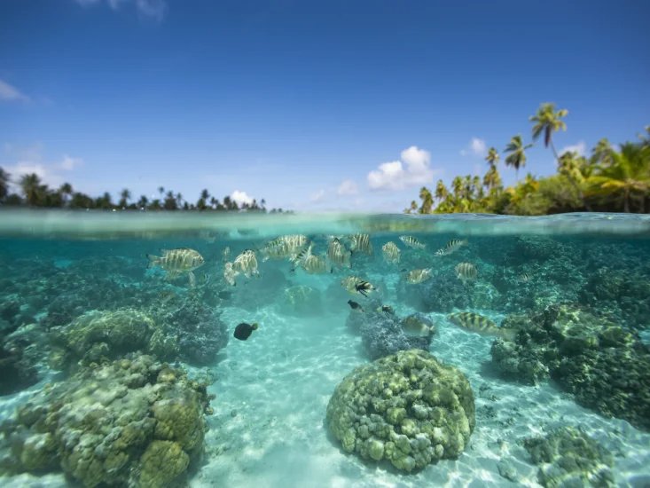 Atolones de coral con el mejor buceo del Pacífico. Rangiroa y sus pasos con tiburones y delfines. Fakarava biosfera UNESCO. Playas vírgenes, snorkel extraordinario.