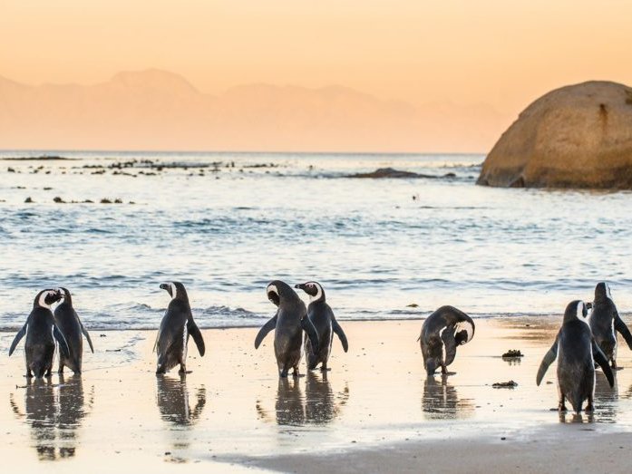 Boulders Beach es famoso por su colonia de pingüinos africanos en un entorno natural único. Podrás observarlos de cerca mientras caminan, nadan y descansan entre las rocas. Una experiencia encantadora y memorable para todas las edades.