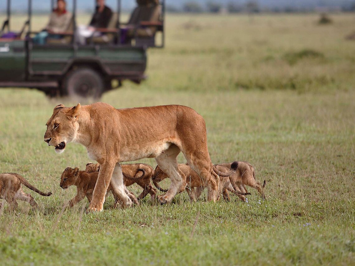La forma clásica de explorar la sabana. Vehículos abiertos, guías expertos y la fauna de cerca.