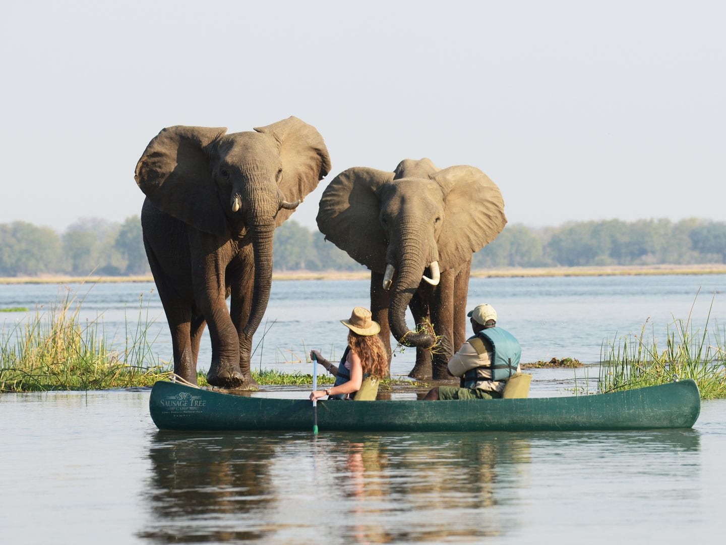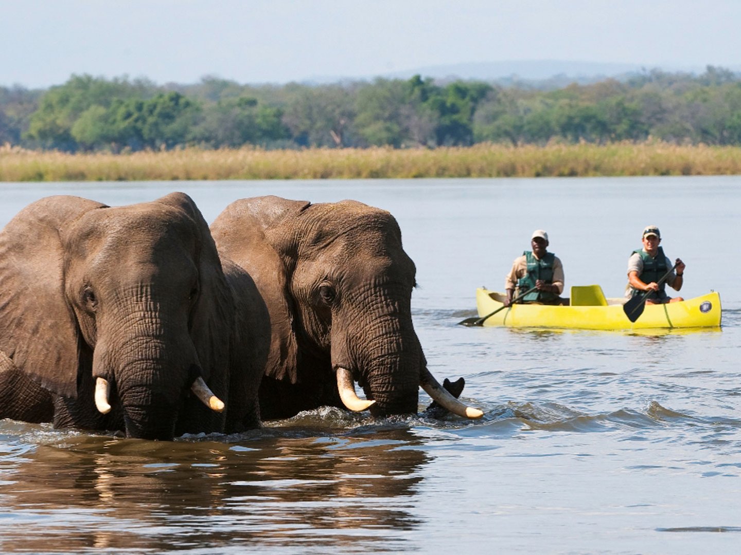 Safari acuático en canoa entre elefantes e hipopótamos. Pesca de tiger fish y atardeceres espectaculares sobre el río.